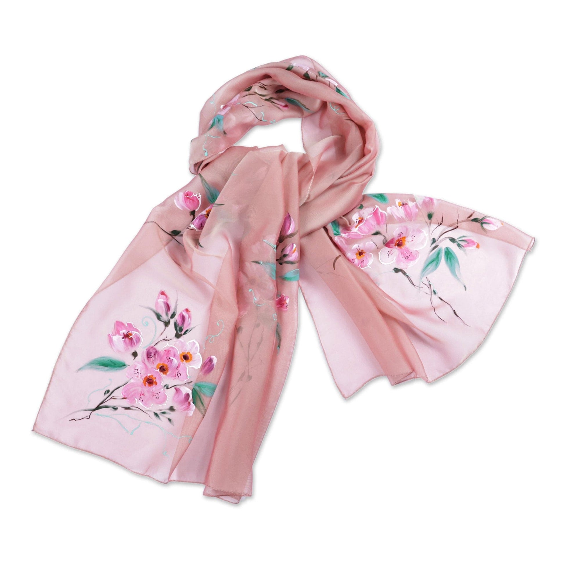 Armenian Beige Silk Scarf with Hand-Painted Floral Motifs - Garden Delight