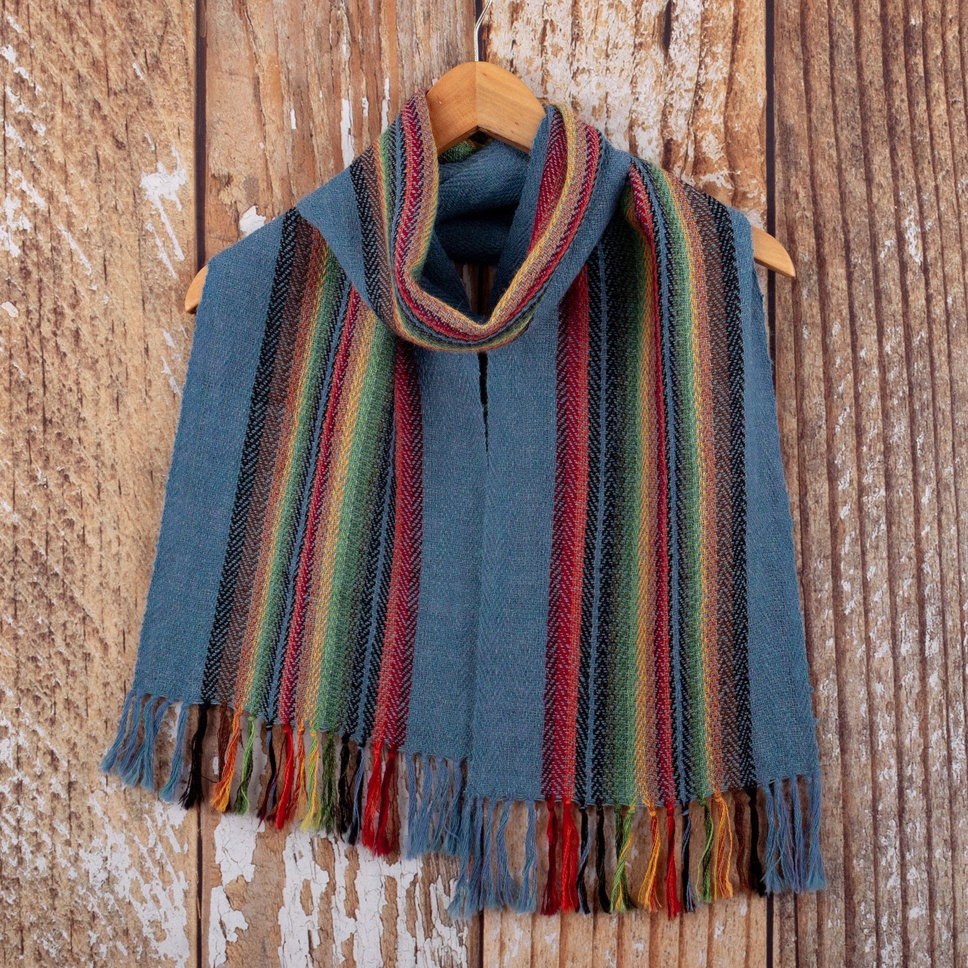 100% Alpaca Striped and Fringed Scarf Hand-Woven in Peru - After The Rain
