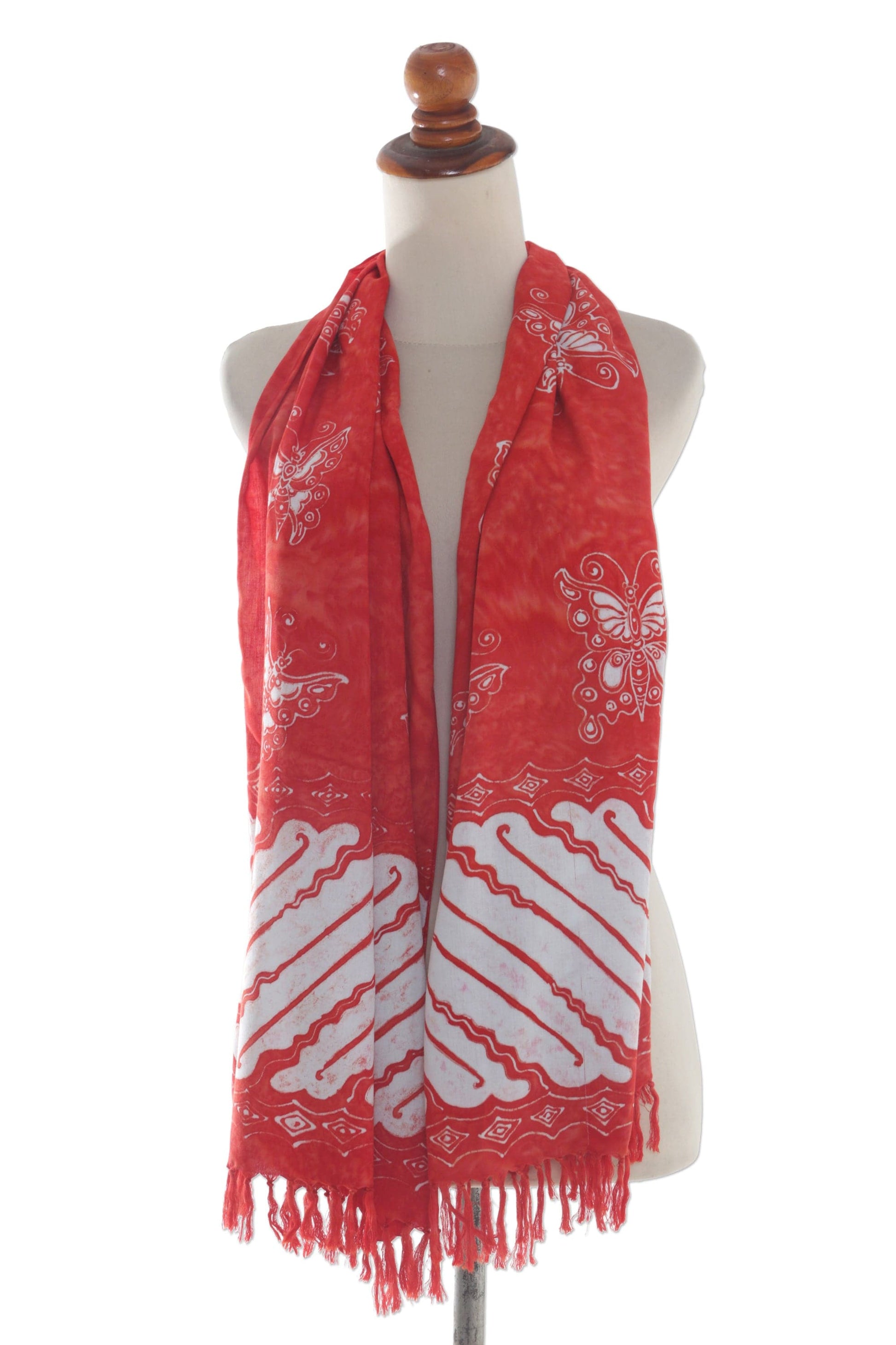 Balinese Handmade Rayon Batik Scarf with Butterfly Motif - Lady of the Butterflies