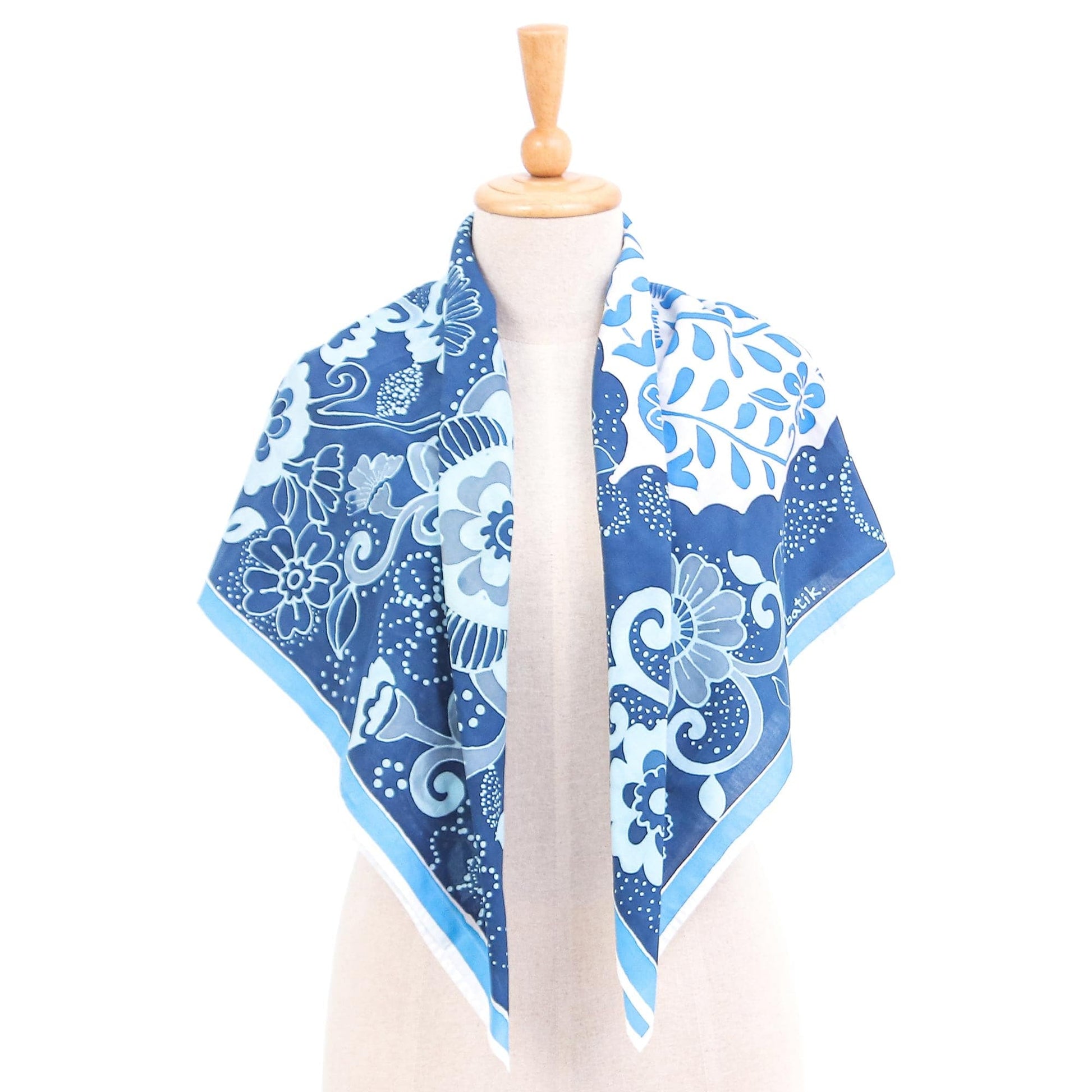 Batik Cotton Garden-Motif Scarf - Icy Garden
